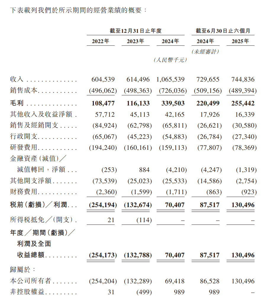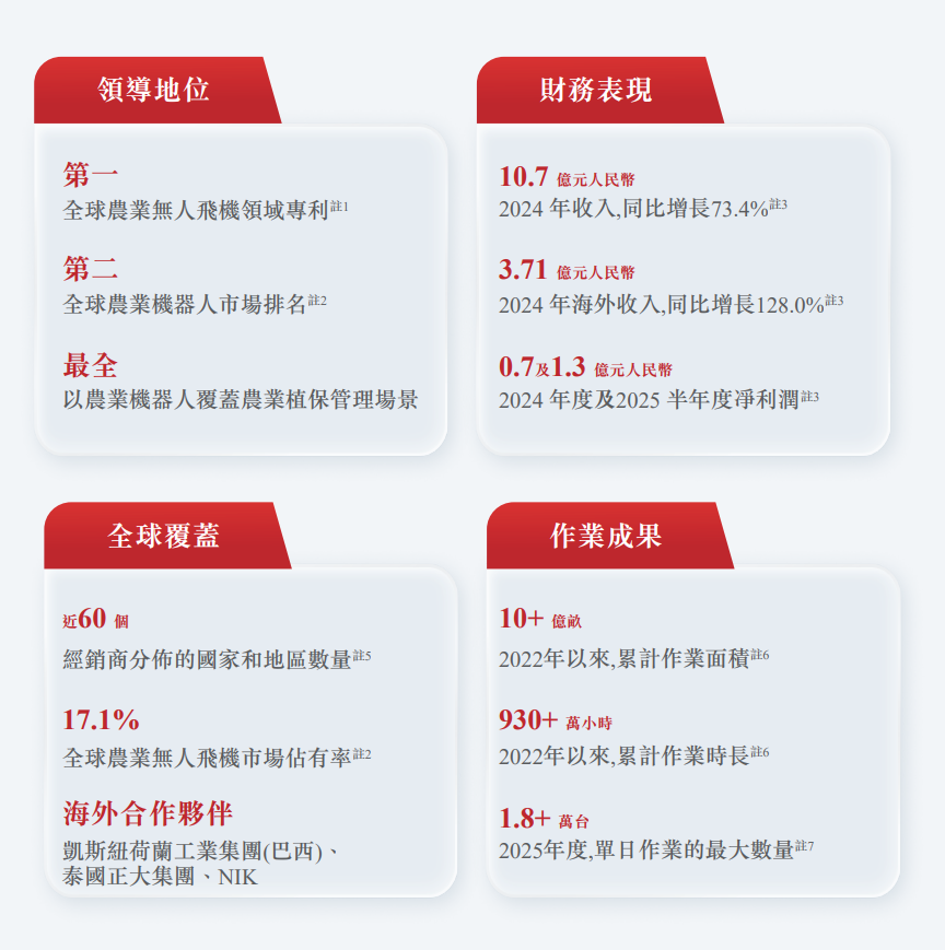 虽然极飞科技于2022年录得人民币2.54亿元的净亏损,但于2023年收窄至人民币1.33亿元,并于2024年转为录得人民币0.70亿元的净利润,极飞科技2025年前6个月利润为1.3亿元,同比增长49.1%。