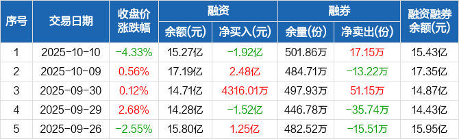 创业板ETF:融资净偿还1.92亿元,融资余额15.27亿元(10-10)