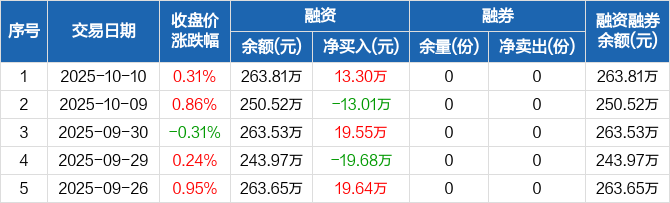 恒生红利ETF:融资净买入13.3万元,融资余额263.81万元(10-10)