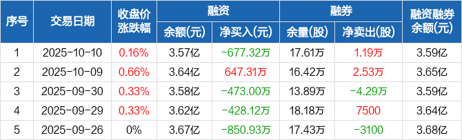 上海凯宝:融资净偿还677.32万元,融资余额3.57亿元(10-10)