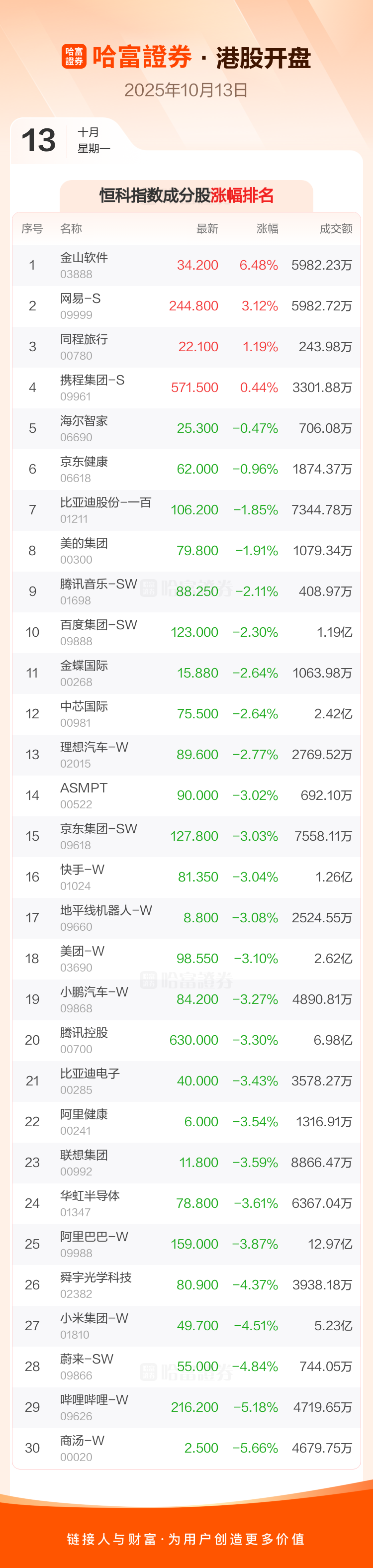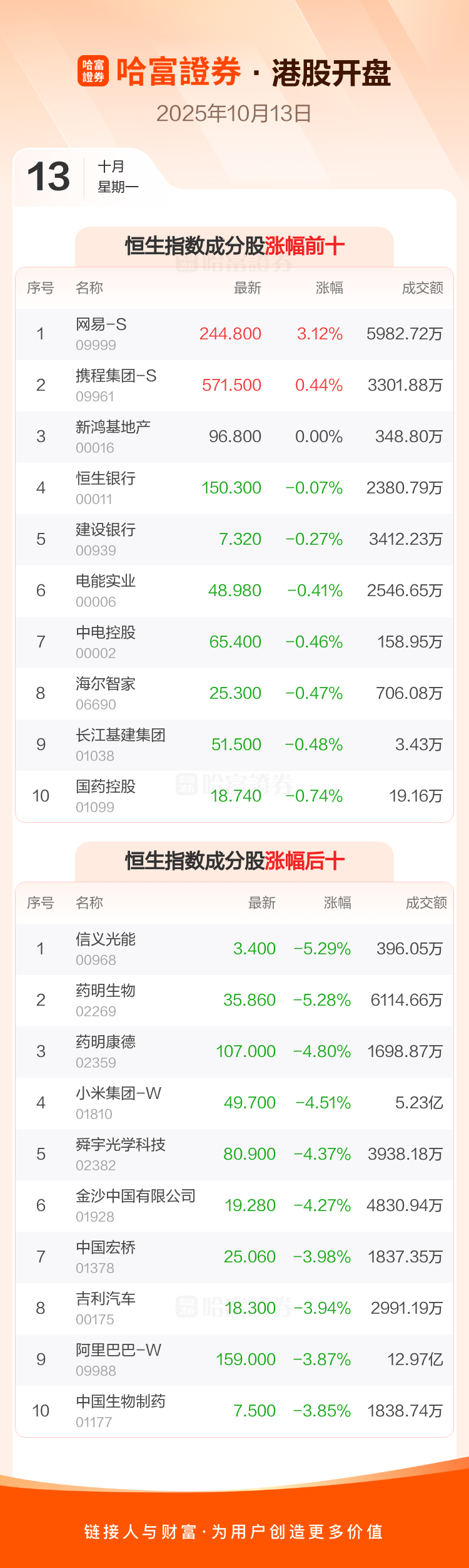 港股开盘:恒指低开2.5% 信义光能领跌成分股