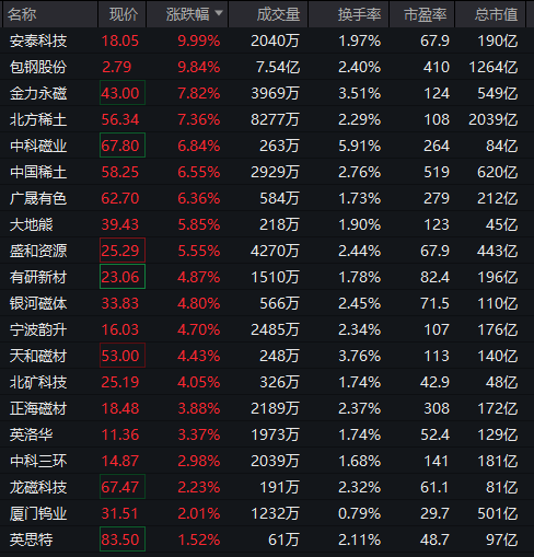 稀土永磁板块强势走高