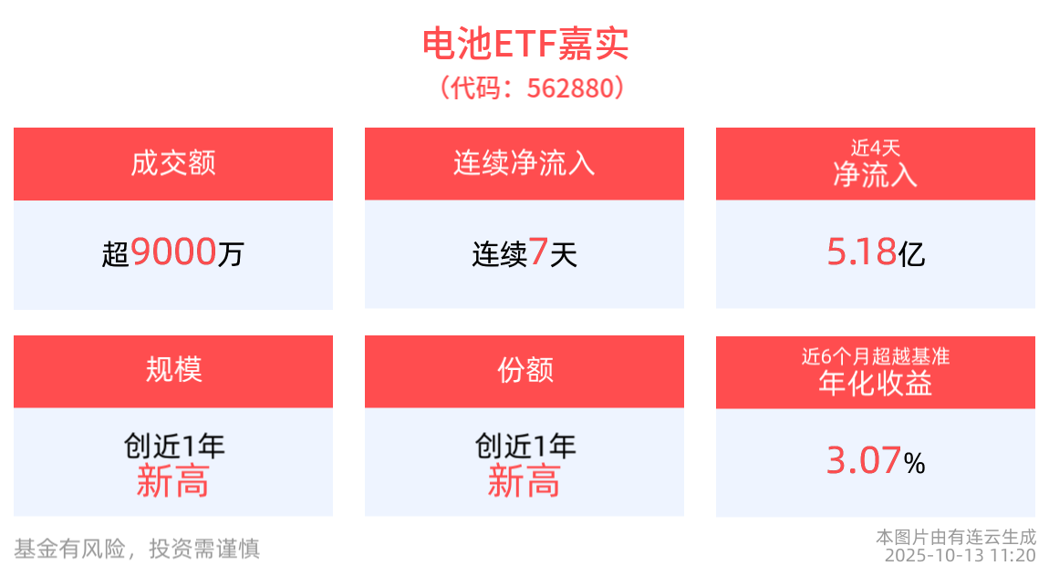 全固态电池正迈向产业化导入阶段,电池ETF嘉实(562880)连续7天净流入