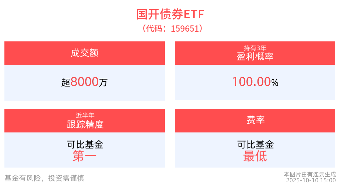 跟踪精度方面,截至2025年10月10日,国开债券ETF近半年跟踪误差为0.015%,在可比基金中跟踪精度最高。