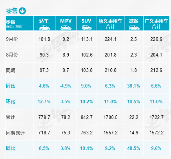 创历史新高!9月全国乘用车零售销量达224.1万辆 乘联分会:车市将现“银九金十”