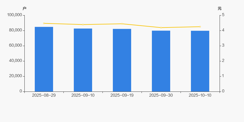 自2025年8月29日以来,公司股东户数连续4期下降,截至目前减幅为6.01%。2025年8月29日至2025年10月10日区间股价下降4.92%。