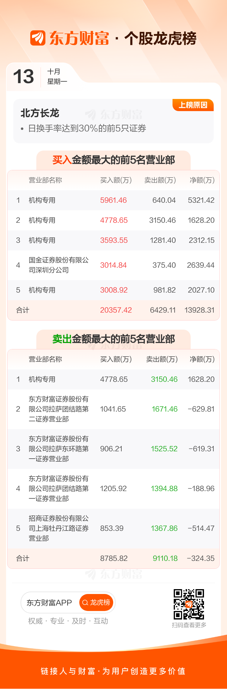 北方长龙(301357)龙虎榜数据(10-13)