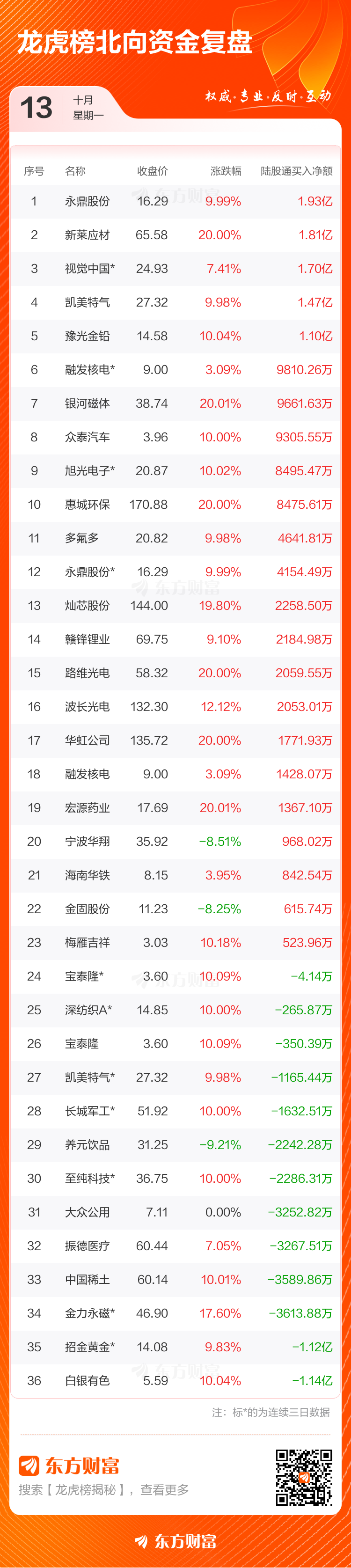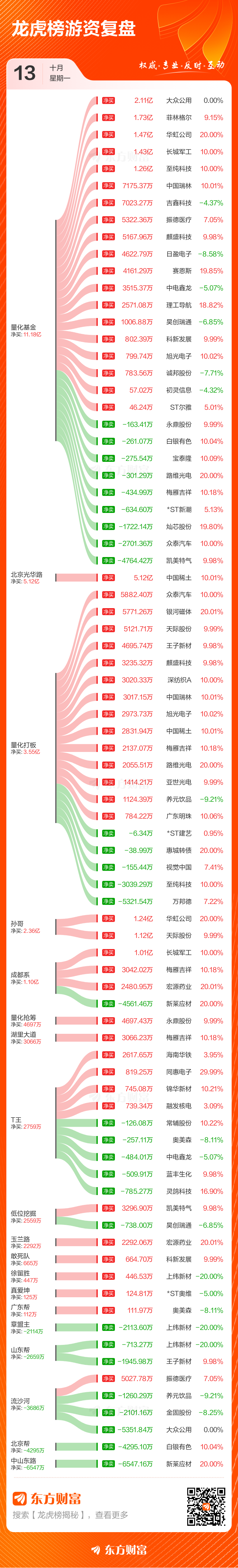 10月13日龙虎榜复盘:“北京光华路”5.12亿元净买入中国稀土