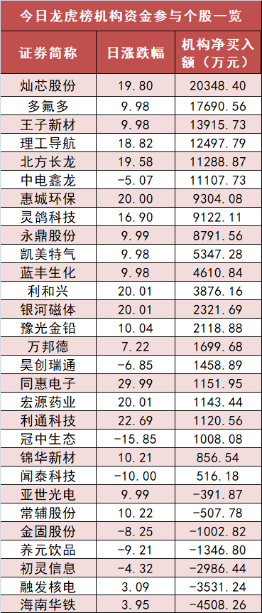 盘后龙虎榜数据显示,机构现身多股,其中灿芯股份等股票呈现机构资金净买入,海南华铁等股票呈现机构资金净卖出。