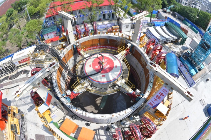 上海虹莘调蓄池是全国首个采用机械法竖井施工的调蓄项目,主要建设内容包括一座初期雨水调蓄池,同步建设初期雨水截流管、放空管以及配套工艺设备、地下变电所、通信、场地等附属工程等。其中,竖井直径16.3米,深度44.6米的圆形竖井是该项工程的重中之重,采用国产大直径沉井式竖井掘进机自上而下开挖施工。