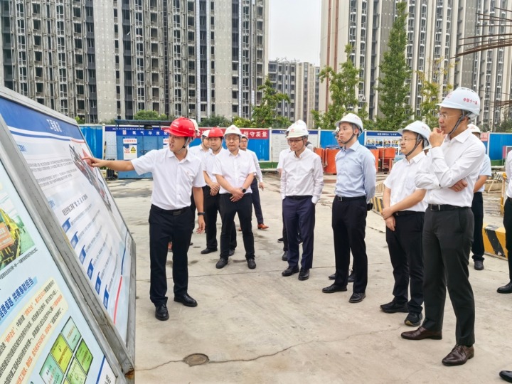 在工程施工现场,香港考察团详细观摩了调蓄池竖井结构、智能控制中心和实时监控平台。中国铁建(香港)有限公司董事王栋、中铁十一局副总经理王贤俊陪同调研。双方就调蓄池的设计容量、运行原理,设备在应对极端降雨天气中发挥的削峰减排关键作用,及其在初雨污染控制、改善区域水环境方面的综合效益等方面进行了细致交流。