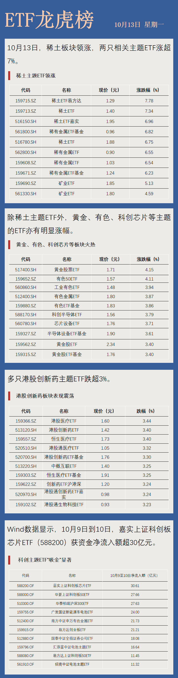 【ETF龙虎榜】单日最多涨超7%!稀土主题ETF表现强势