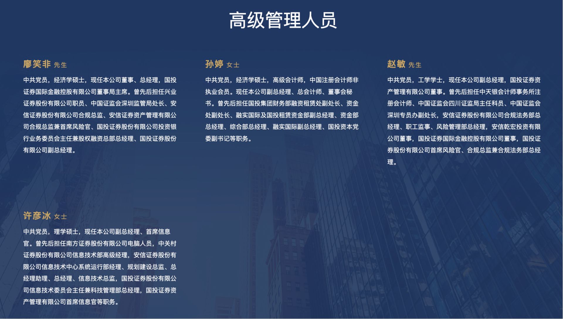 从履历来看,廖笑非既熟悉证券行业一线业务运作,又具备监管视角下的合规风控能力,还拥有跨部门、跨业务条线的管理经验,且对国投证券内部运作机制、业务布局有着深入了解。