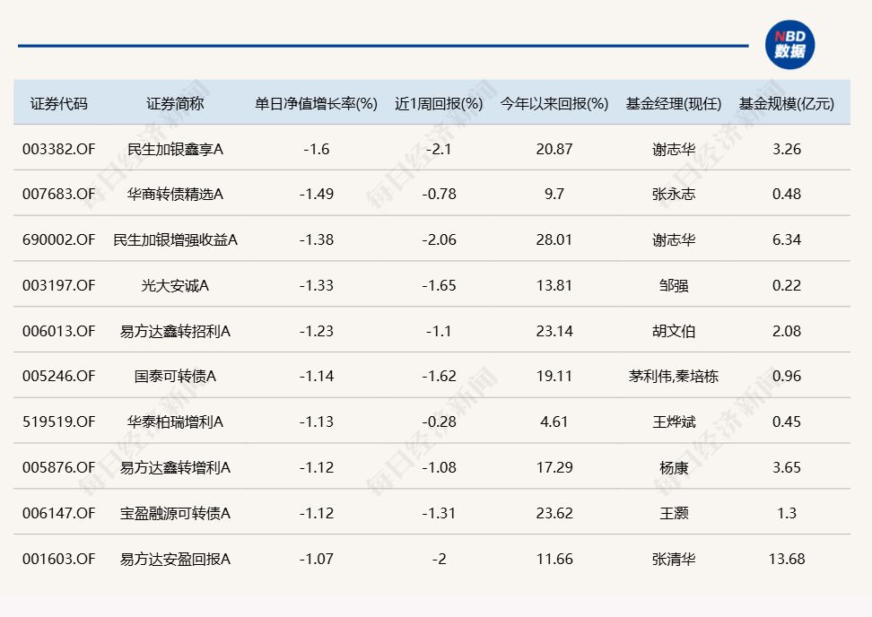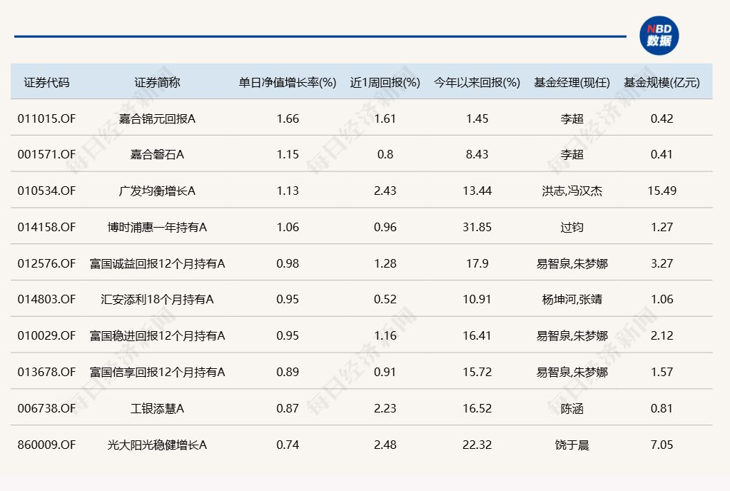 3.单日债基涨跌幅榜