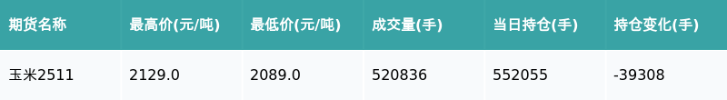 南财智讯10月13日电,南财金融终端盘后期货数据显示,大连商品交易所的玉米主力合约收跌1.83%,收盘报2092.0元/吨,日内资金流出1.42亿元。其他相关指标见下表: