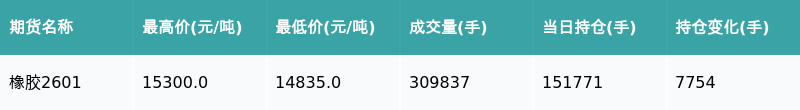 南财智讯10月13日电,南财金融终端盘后期货数据显示,上海期货交易所的橡胶主力合约收跌2.73%,收盘报14940.0元/吨,日内资金流入1.24亿元。其他相关指标见下表: