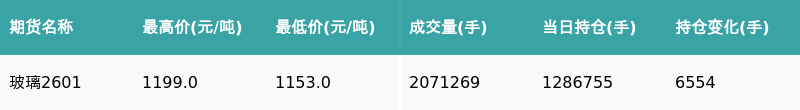 南财智讯10月13日电,南财金融终端盘后期货数据显示,郑州商品交易所的玻璃主力合约收跌3.68%,收盘报1179.0元/吨,日内资金流出1.12亿元。其他相关指标见下表: