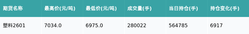 南财智讯10月13日电,南财金融终端盘后期货数据显示,大连商品交易所的塑料主力合约收跌0.98%,收盘报6983.0元/吨,日内资金流入1272.36万元。其他相关指标见下表: