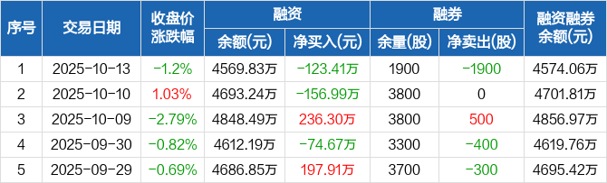 热威股份:融资净偿还123.41万元,融资余额4569.83万元(10-13)