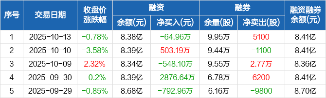 国民技术:融资净偿还64.96万元,融资余额8.38亿元(10-13)