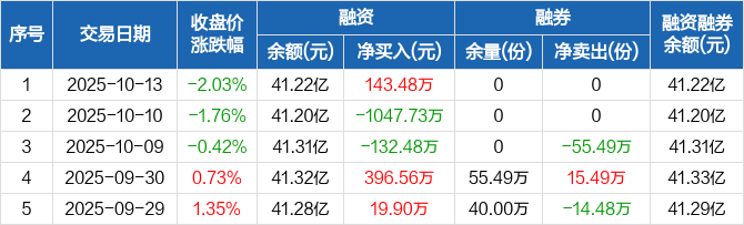 恒生ETF:融资净买入143.48万元,融资余额41.22亿元(10-13)
