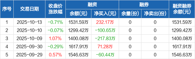 港股央企红利ETF:融资净买入232.17万元,融资余额1531.59万元(10-13)