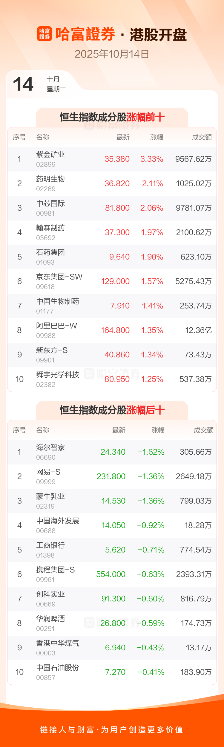港股开盘:恒指高开0.31% 紫金矿业领涨成分股