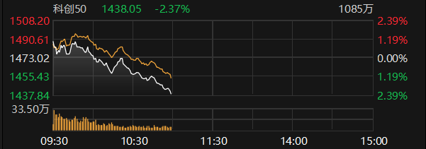 上证报中国证券网讯 10月14日,科创50指数跌超2%。截至10时59分,该指数跌2.37%。成分股中,华海清科、盛美上海跌超6%,拓荆科技、金山办公跌超5%。