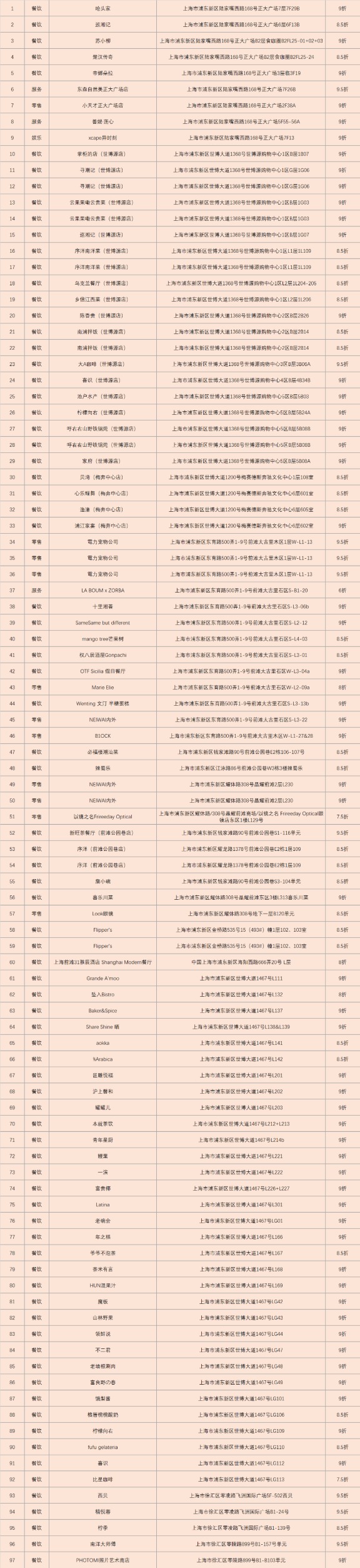 第一批“票根”联动消费试点活动商户清单