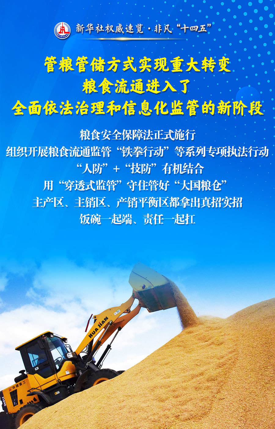 悠悠万事,吃饭为大。“十四五”时期,各地区各有关部门积极践行新粮食安全观,大力实施国家粮食安全战略,扎实推进粮食产购储加销协同保障,粮食流通改革发展各项任务进展符合预期,国家粮食安全得到有效保障,为经济社会高质量发展提供了有力支撑。跟随海报,一起了解。