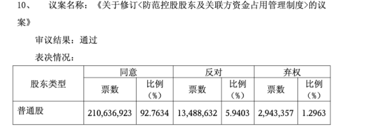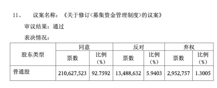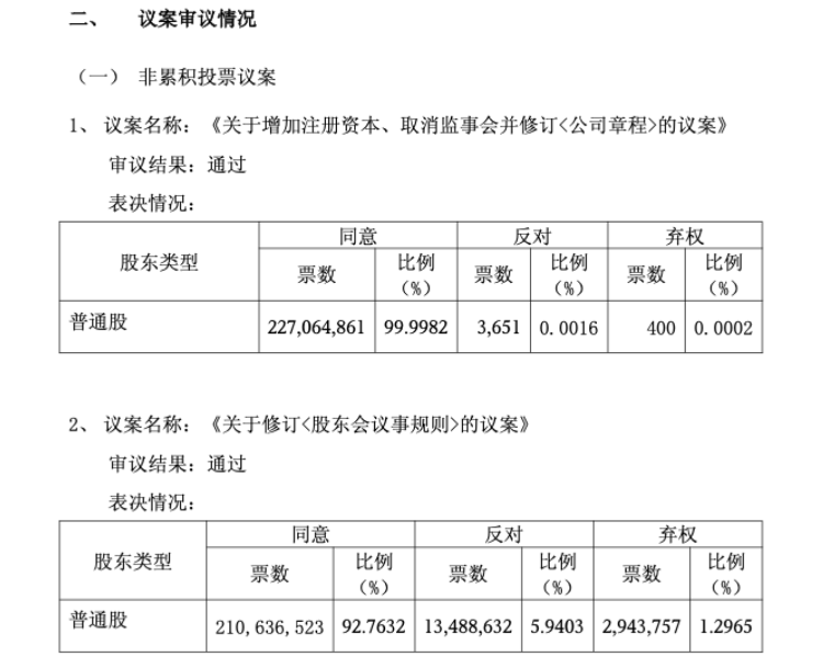 但记者注意到,在议案2至议案8、议案10至议案11中,反对票数量稳定在1348万至1367万股之间,弃权票约294万股,同意票比例均约92.7%。