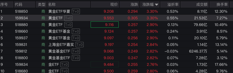 金价期价盘中突破4180美元,黄金ETF华夏(518850)一度大涨超5%