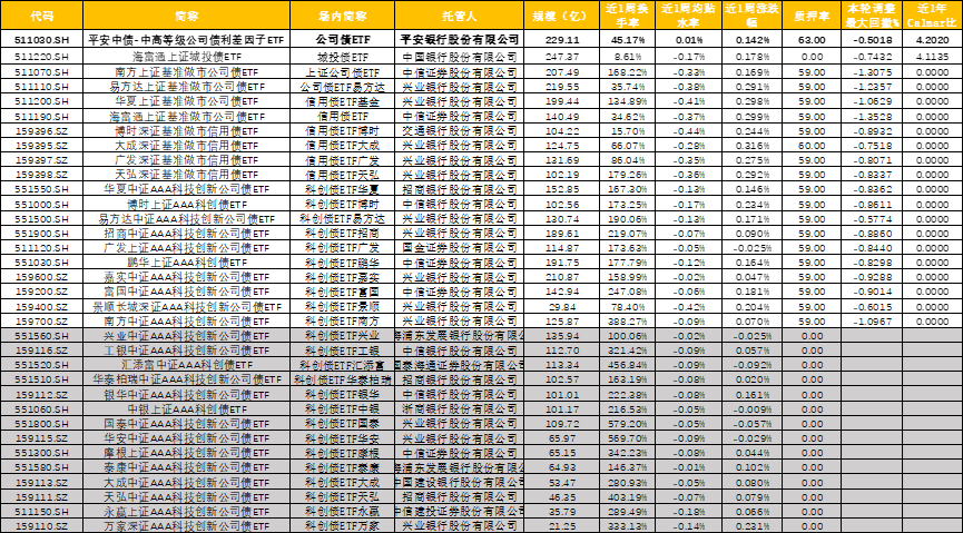 在债市新一轮回调背景下,长假前后多数信用债ETF均折价10-30bp,平安公司债ETF仍保持升水状态,周均溢价1bp,原因在于市场下跌时不断的客户买入,由于产品成立更久且风险控制优秀,在极端行情下交易仍保持活跃,产品折价保护优势相对突出。今年以来平安公司债ETF(511030)回撤控制排名第一,净值相对稳健且回撤可控,近1周平均升水1BP,可参考下表: