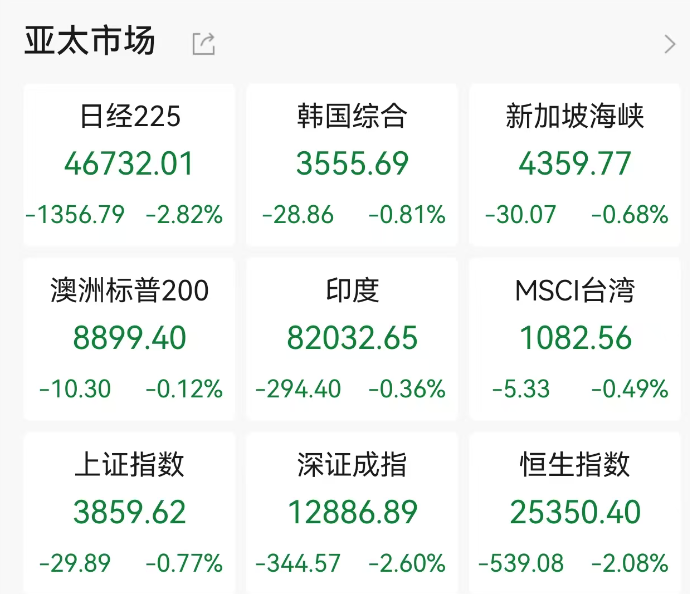 亚太股市集体下挫 黄金、白银、比特币等资产走低