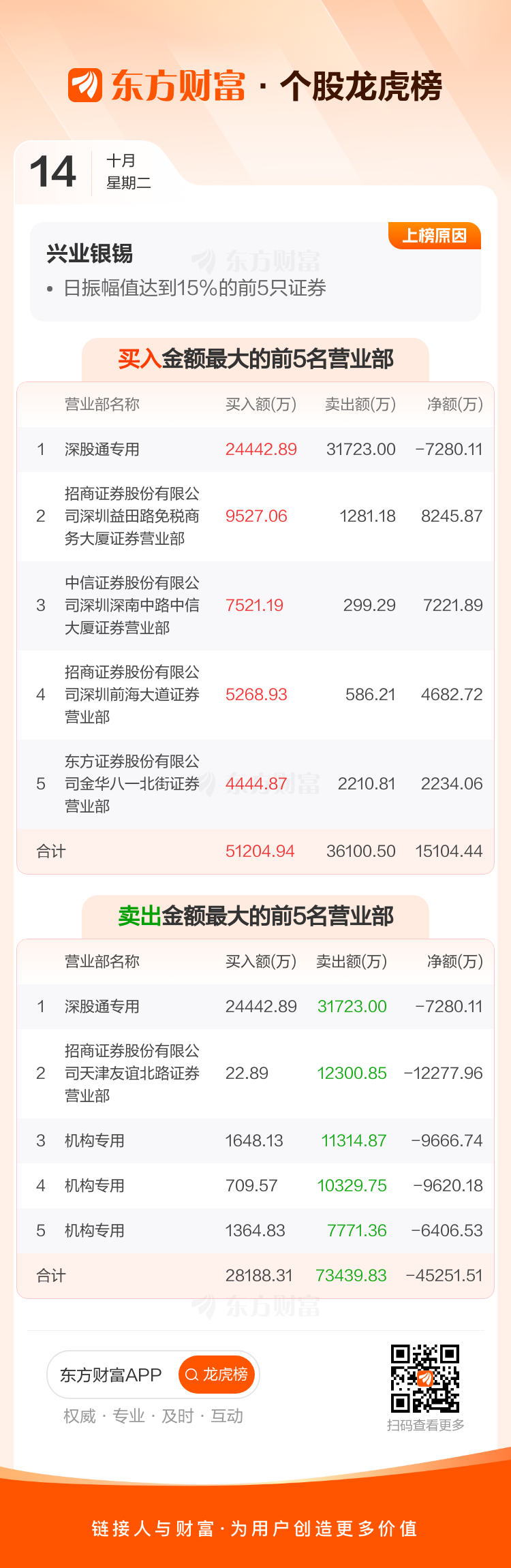 兴业银锡(000426)龙虎榜数据(10-14)