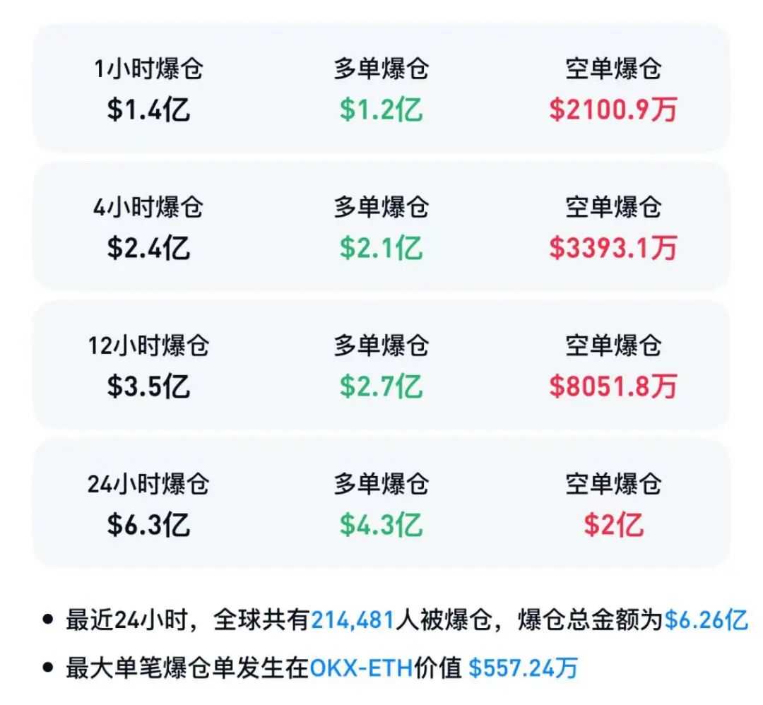 coinglass显示,最近24小时内,虚拟货币市场超20万人爆仓。