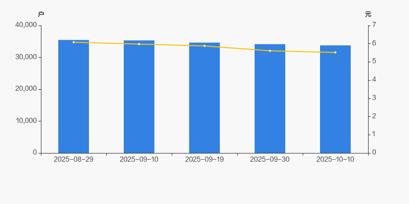 截至2025年10月10日,公司最新流通股本为6.33亿股。户均持有流通股数量由上期的1.85万股上升至1.88万股,户均流通市值10.35万元。