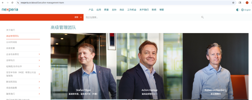 记者发现,安世半导体官网的高级管理团队页面已不再显示张学政照片,首席财务官Stefan Tilger职务增加“首席执行官(代理)”。另外,首席法务官Ruben Lichtenberg照片排名提前,与首席财务官、首席运营官Achim Kempe并居高管排序首行。