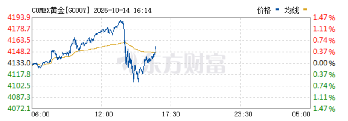 10月14日早盘,黄金白银继续大涨!现货黄金(伦敦金现)盘中最高触及4179.748美元/盎司高点,COMEX黄金最高触及4190.9美元/盎司,沪金(SHFE黄金)最高触及958.10元/克;现货白银(伦敦银现)最高触及53.579美元/盎司;COMEX白银最高触及52.495美元/盎司,沪银盘中最高触及12096元/千克。