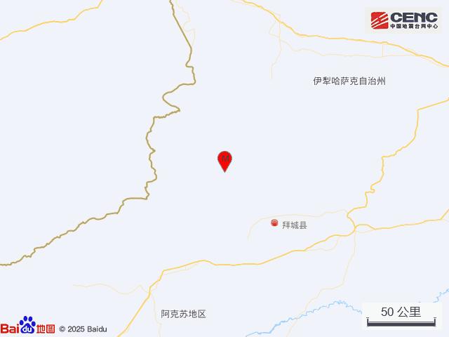 根据中国地震台网速报目录,震中周边200公里内近5年来发生3级以上地震共186次,最大地震是2024年4月10日在新疆阿克苏地区拜城县发生的5.6级地震(距离本次震中119公里),按震级大小前50次历史地震分布如图。