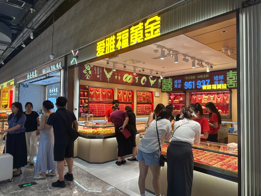 首饰金方面,金价高涨,婚庆“刚需”受影响较小。21世纪经济报道记者在现场看到,水贝多家专营婚庆首饰的店铺挤满顾客,有店主表示,7月份以后便进入婚庆首饰旺季,一般会持续到过年期间。