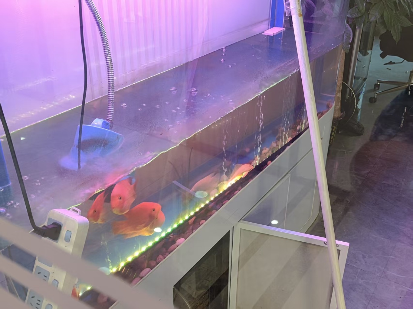 “粤宝鑫”门口鱼缸内的水已经浅了一半,“招财”金鱼仍在游动着。周良成/摄