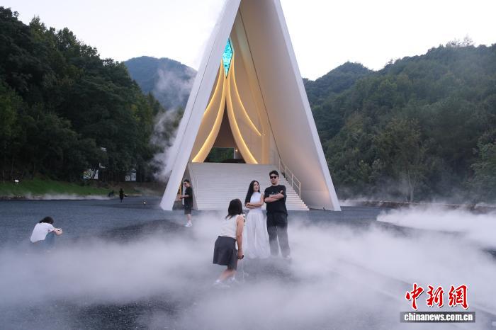 10月9日,游客在“深蓝计划·深蓝公园”内拍照打卡。曹丹摄