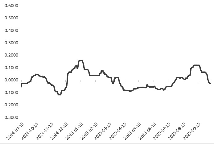 9月以来,国债期货市场经历了“震荡下跌→政策预期驱动反弹→避险需求推动上涨”的过程,10年期和30年期品种表现亮眼。9月下旬,央行公开市场操作净回笼,叠加跨季需求回升,短端利率上行,国债期货延续调整态势,长端债市跌幅较大。9月24日,30年期国债期货主力合约创近半年新低,10年期国债期货围绕107.7元窄幅波动。国庆节后资金面宽松促进债市修复,且美国加征关税威胁再起,市场避险情绪升温,10年期国债收益率下跌3.2BP,至1.743%,创阶段性新低。