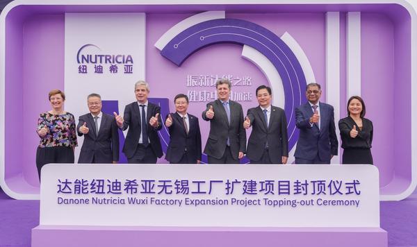 中国网财经10月14日讯 10月13日,达能纽迪希亚制药(无锡)有限公司工厂扩建项目正式封顶。无锡市副市长周文栋、达能首席执行官盛睿安(Antoine de Saint-Affrique)、达能中国、北亚及大洋洲总裁谢伟博(Bruno Chevot)、达能首席运营官Vikram Agarwal、无锡高新区党工委书记、区委书记崔荣国等出席仪式,共同见证了这一具有里程碑意义的时刻。