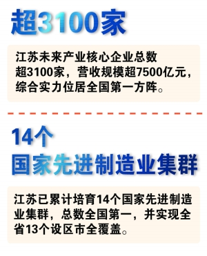 从集成电路、生物医药到新能源、物联网,江苏多个新兴产业已在全国领跑;面向商业航天、人工智能、量子科技等更前沿领域,江苏正加速布局、奋楫争先。目前,江苏未来产业核心企业总数超3100家,营收规模超7500亿元,综合实力位居全国第一方阵。