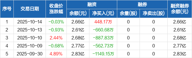 呈和科技:融资净买入448.17万元,融资余额2.66亿元(10-14)