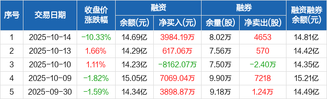 华海清科:融资净买入3984.19万元,融资余额14.69亿元(10-14)