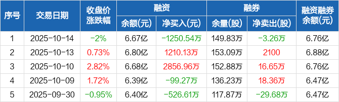 方大炭素:融资净偿还1250.54万元,融资余额6.67亿元(10-14)