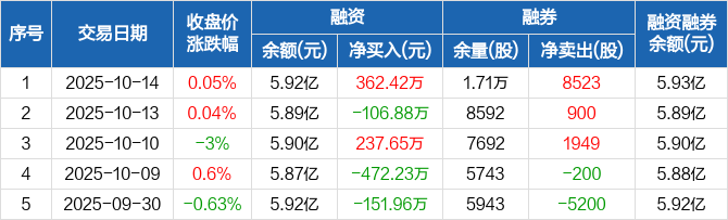 上海谊众:融资净买入362.42万元,融资余额5.92亿元(10-14)